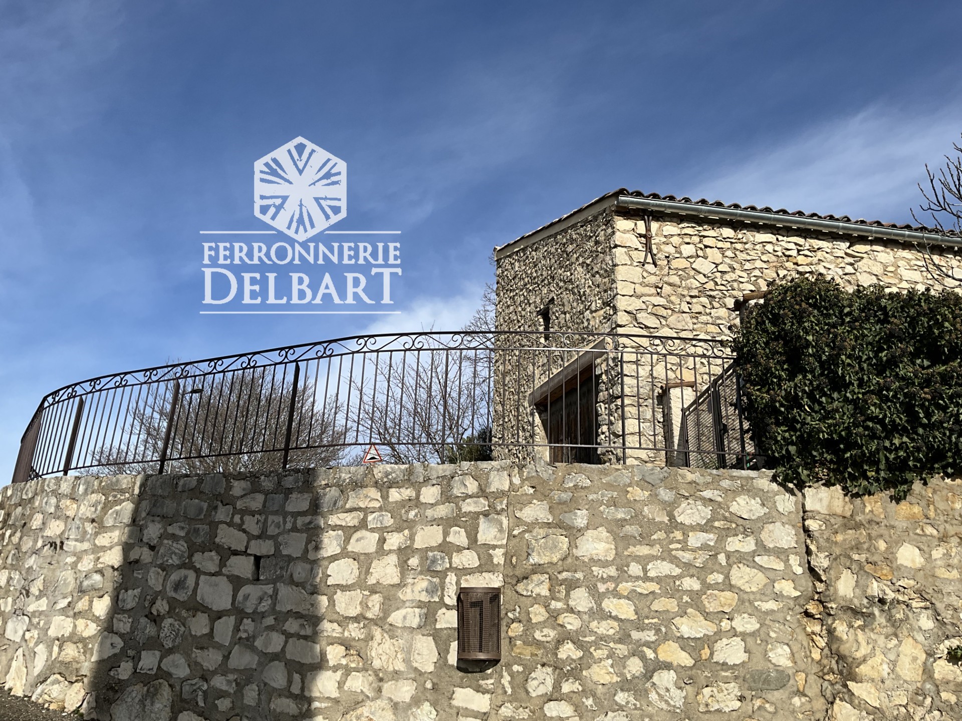 Garde-corps en fer forgé sur mesure volutes à la forge. Mairie de Montfort. Ferronnerie Delbart Alpes de Haute-Provence 04.